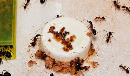 - Можно попробовать изготовить своеобразную ловушку, которая сначала привлечет муравьев, а потом убьет. Для этого в миску с водой необходимо добавить немного сахара, а затем раствор буры. Во-первых, сладкая вода привлечет внимание муравьев, поскольку они являются большими любителями сладкого, а после того как они попробуют раствор буры, то сразу же погибнут из-за пищевого отравления.